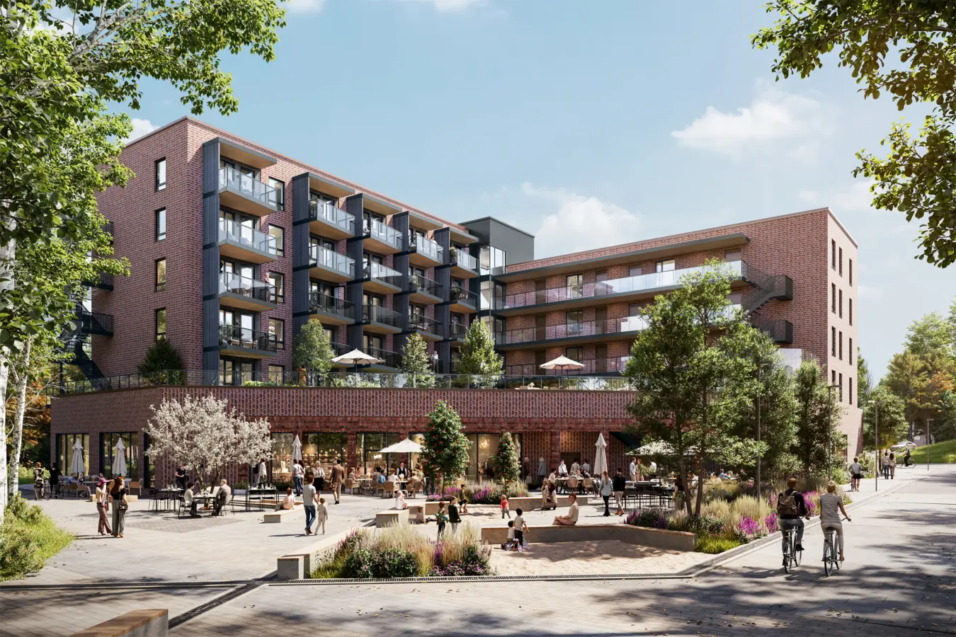 I områdets østre del (mot Billingstadveien) etableres et torg men næringslokaler på gateplan. Lokalene selges (samlet eller separat) som rålokalerog ferdigstilles av kjøper. Ferdigstillelse for BTA 4 er beregnet å være 4. kvartal 2025 og BT5 første halvår 2026.