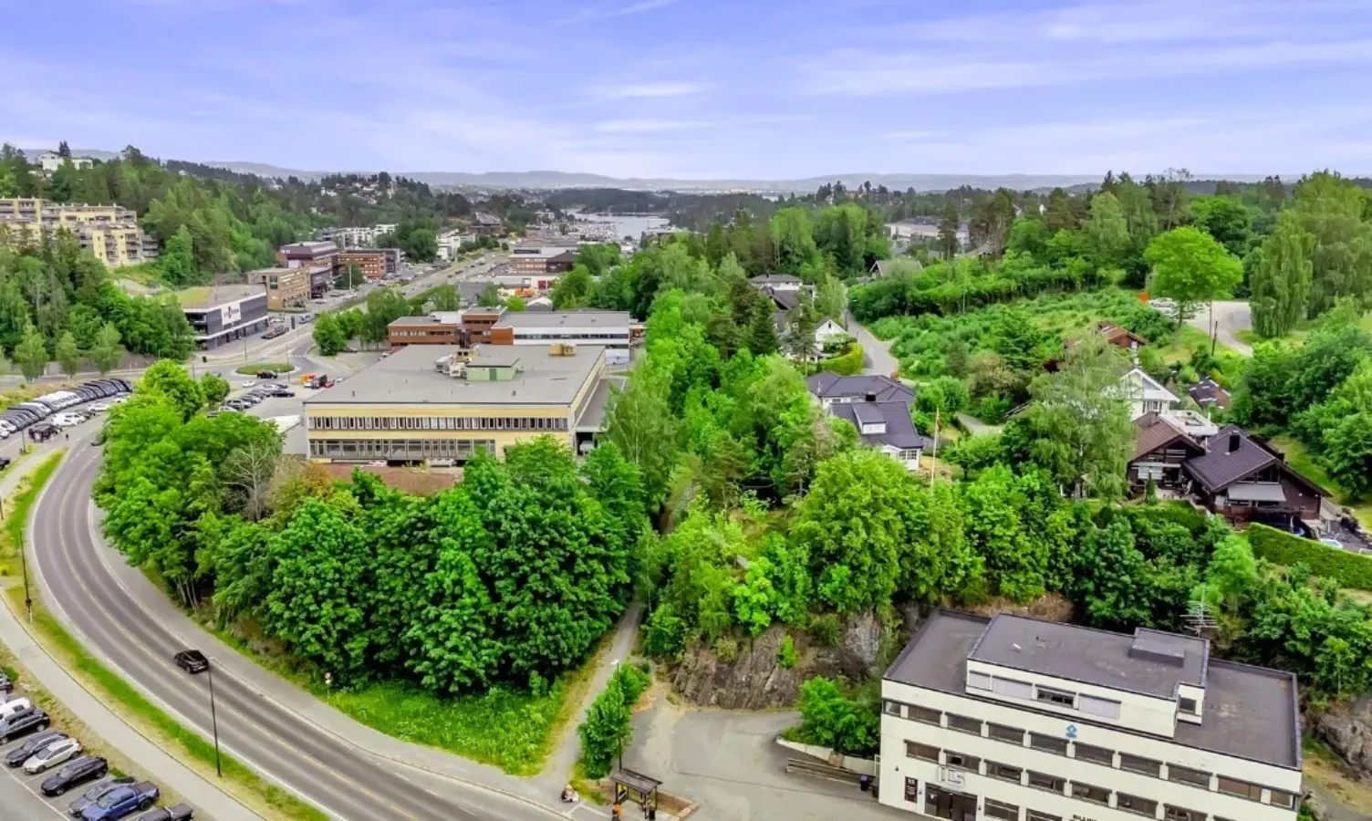 Enkel adkomst fra E-18 med bil og god parkeringsdekning på eiendommen.