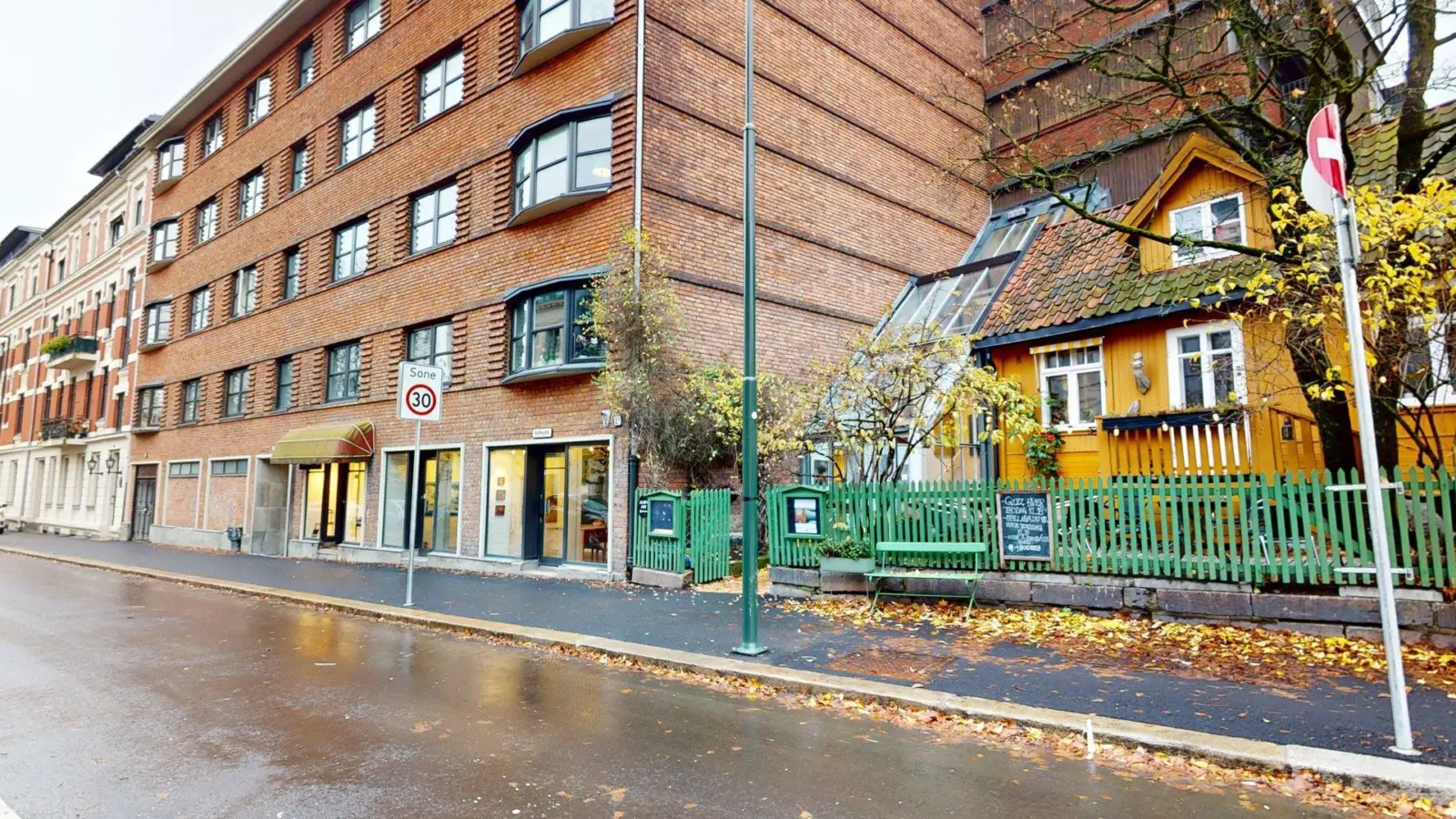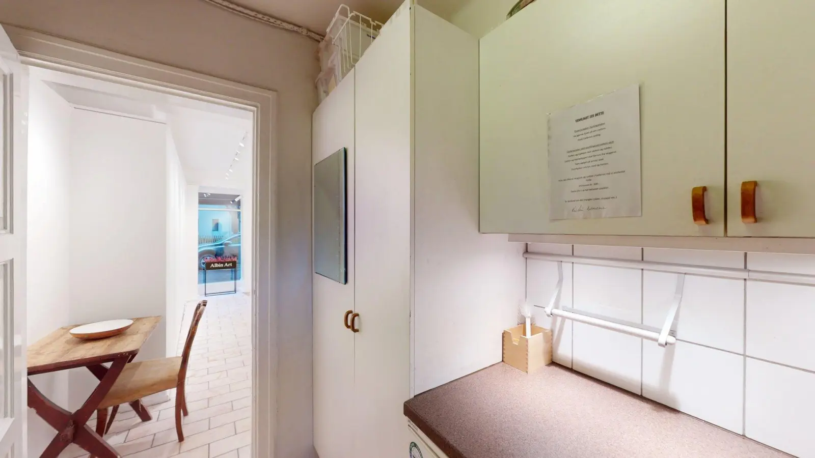 Lokalene huser i dag galleriet Albin Upp og har med meget god beliggenhet i krysset Holtegata og Briskebyveien, vegg i vegg med den hyggelige Kafe Albin og Vinmonopolet. Området er tett befolket, noe som gir et godt kundegrunnlag. Her finner du også flere kafeer, restauranter, hyggelige nisjebutikker, dagligvarebutikker og et rikt utvalg av servicetilbud. Gangavstand til offentlig kommunikasjon med buss og trikk. Det er trikkeholdeplass rett utenfor lokalet når 11-trikken er klar for gjenåpning.