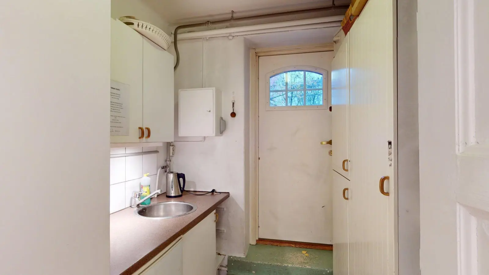 Lokale 2, BTA 28 kvm.: Et sjarmerende lokale store vinduer og egen inngangsdør fra gaten. Lokalet inneholder et stort rom, samt bakrom med kjøkken og noe lagringsplass i skap. Toalett i fellesareal rett utenfor lokalet. Lokalet har flislagt gulv, malte hvite vegger og himling med belysning i skinner.