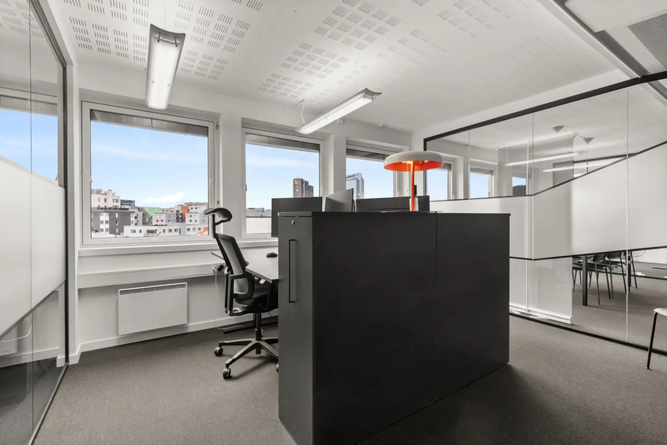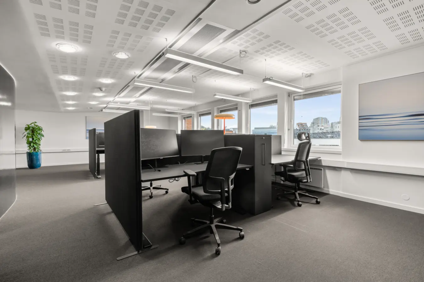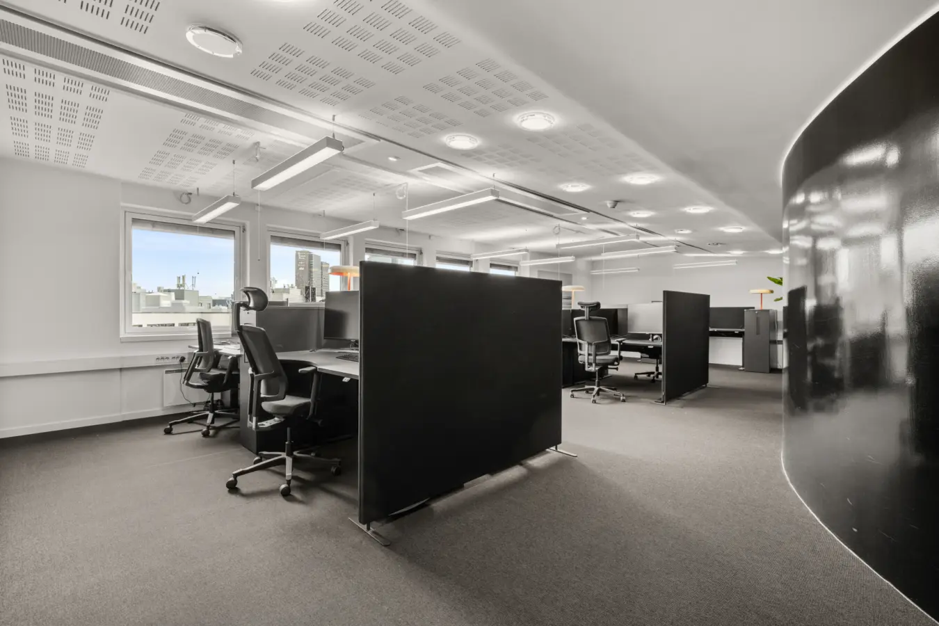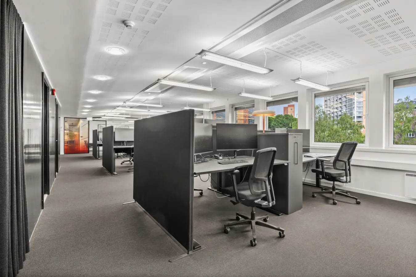 Moderne kontorlokaler med en blanding av landskapsareal, kontorer, flere møterom og sosiale soner. Lokalene er lyse og gjennomgående. Holder en høy standard. Vi er fleksible i forhold til oppdeling av etasjen og kan dele den opp i flere leieforhold.