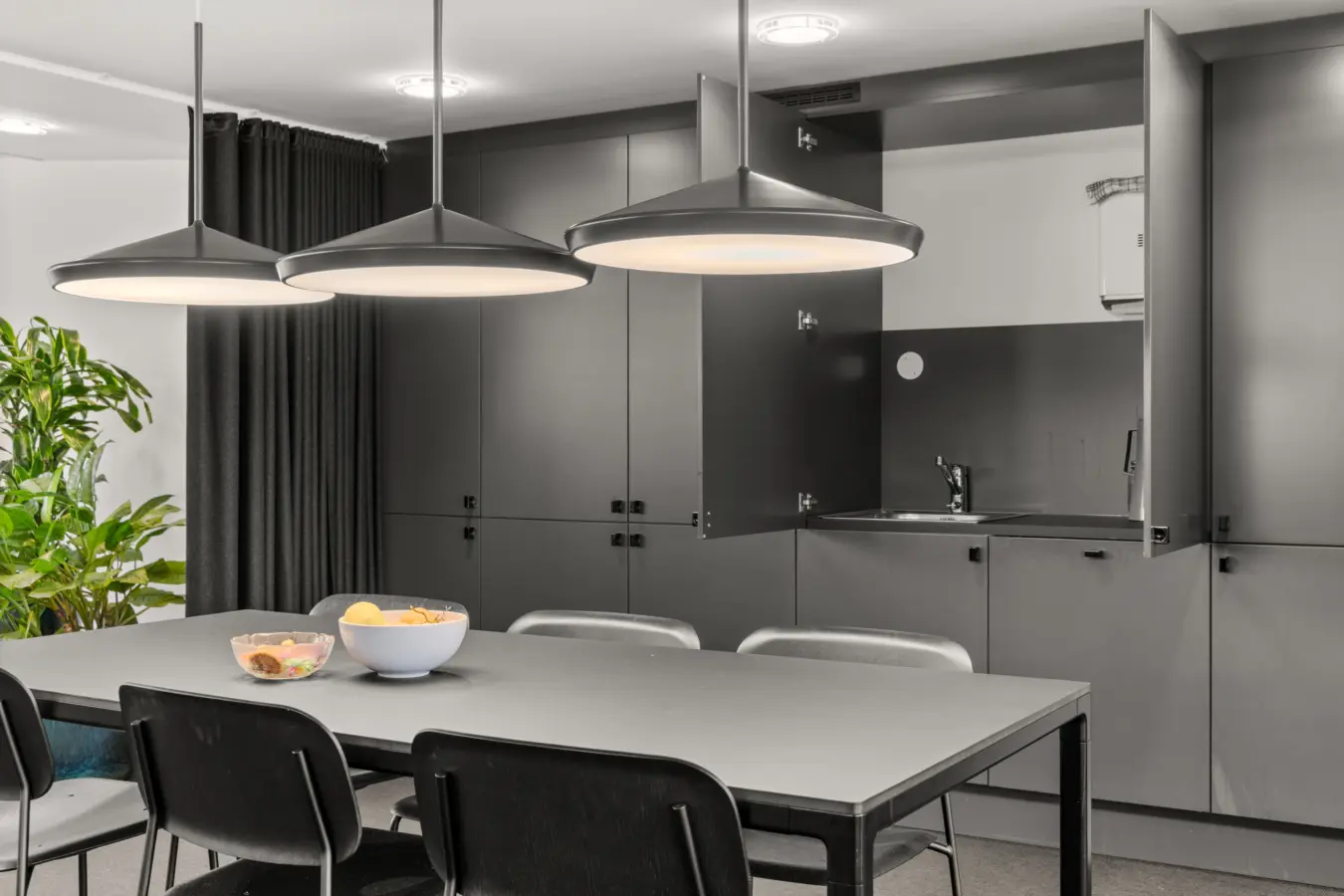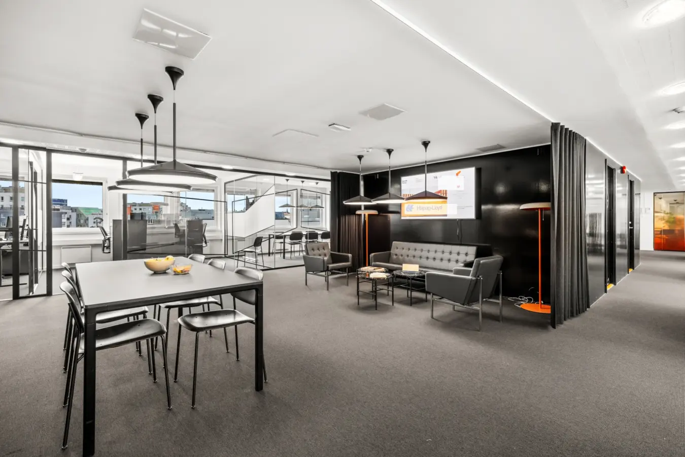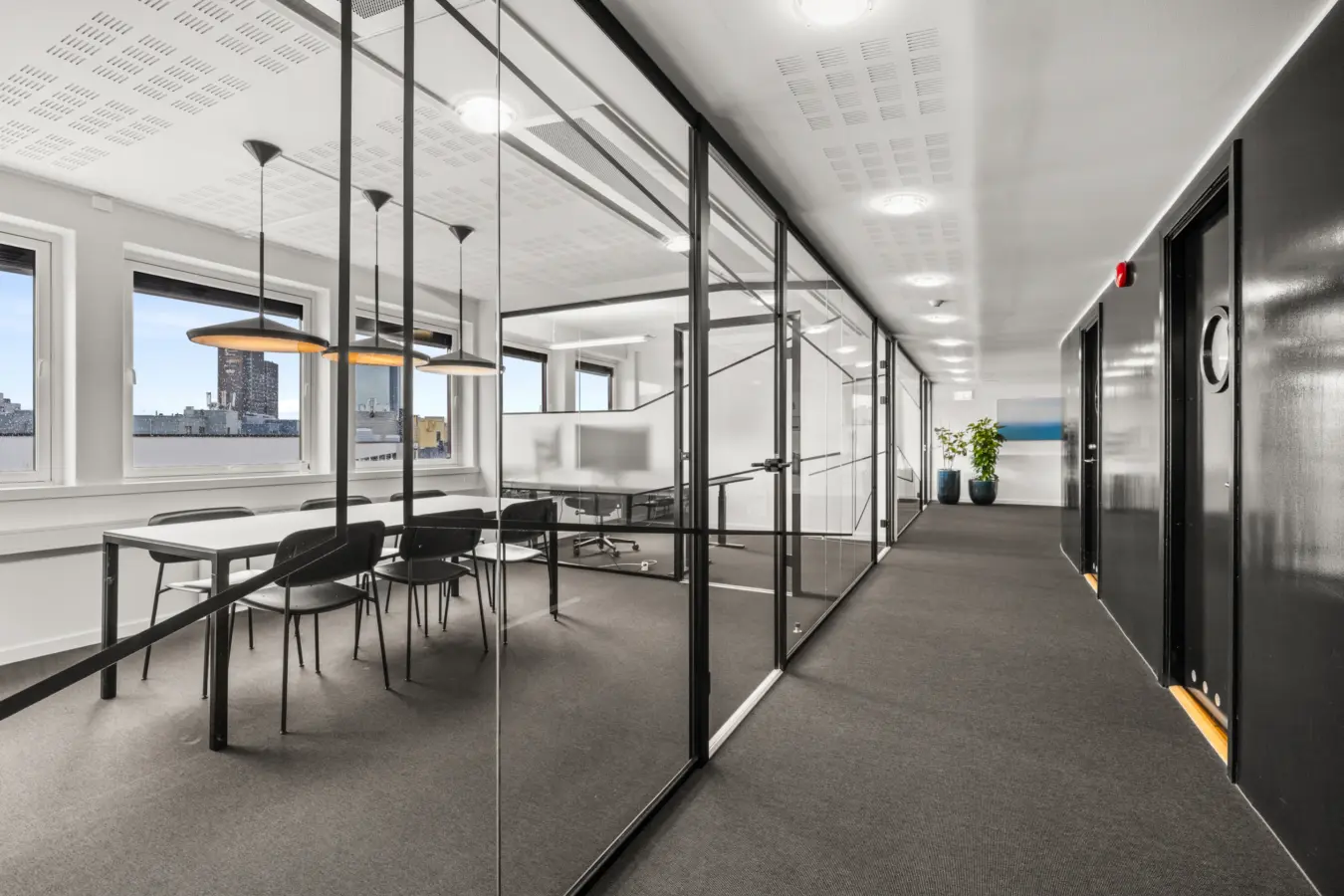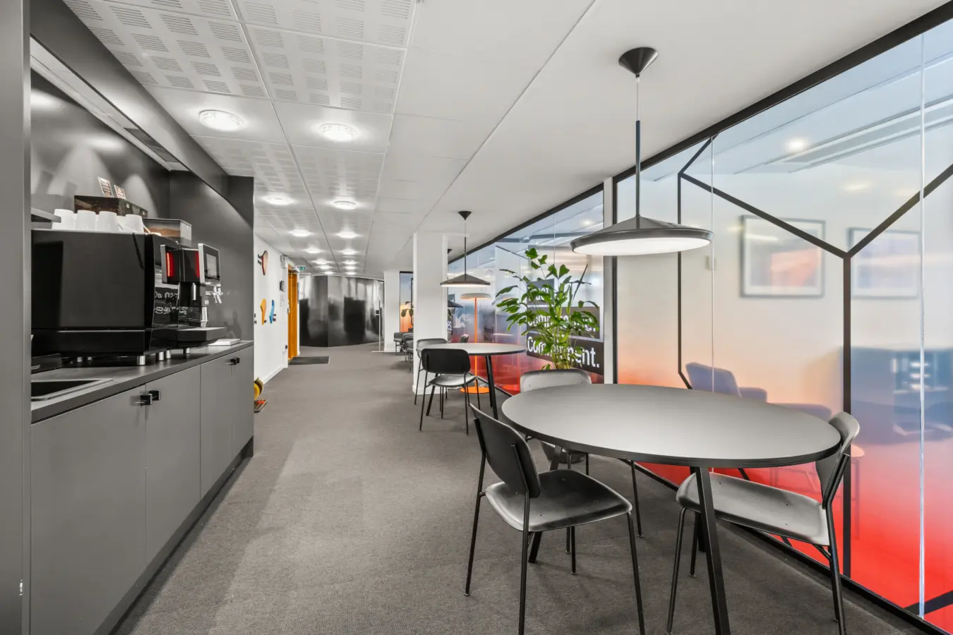 Moderne kontorlokaler med en blanding av landskapsareal, kontorer, flere møterom og sosiale soner. Lokalene er lyse og gjennomgående. Holder en høy standard. Vi er fleksible i forhold til oppdeling av etasjen og kan dele den opp i flere leieforhold.