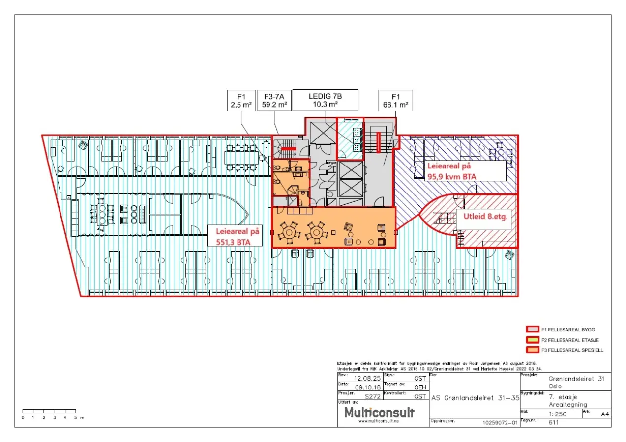 7.etg. ledig areal fra ca. 96 til 631 kvm BTA.