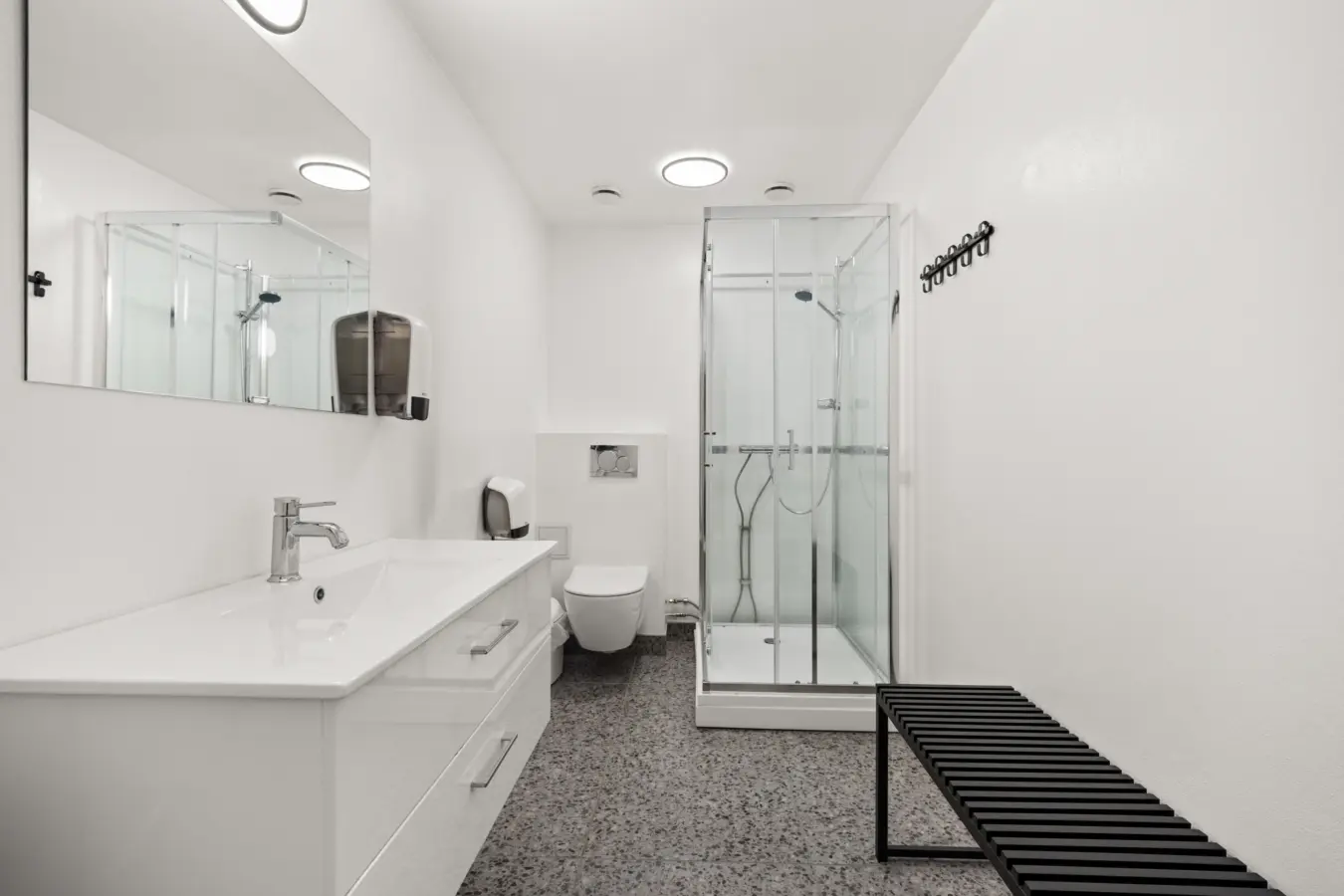 Etasjen har felles HCWC og det er adkomst til etasjen via heis eller trappegang. Det er også mulig for leietaker å være med på fellesfasiliteter for etasjen som kjøkken med spiserom, møterom, garderober, m.m.