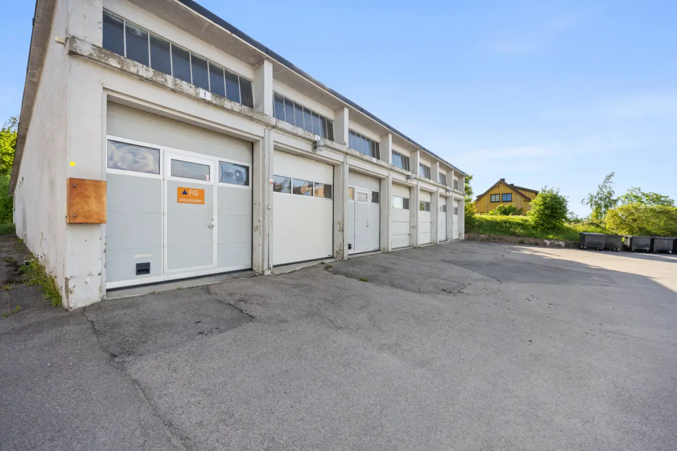 * 110,5 kvm: Lager/verksted med kjøreport. Har tidligere blitt brukt som vaskehall. Har oljeutskiller.