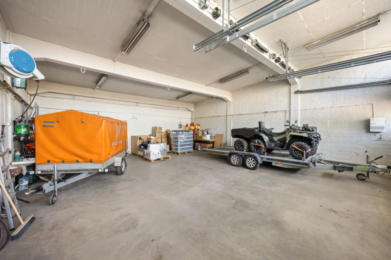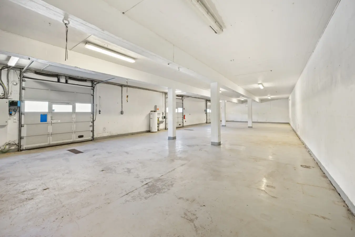 Ca. 184 kvm BTA med 2 kjøreporter. Takhøyde på ca. 3,4 meter. Portene har en bredde på ca. 2,73 meter og høyde på 3 meter. Det er vann og sluk i lokalene.