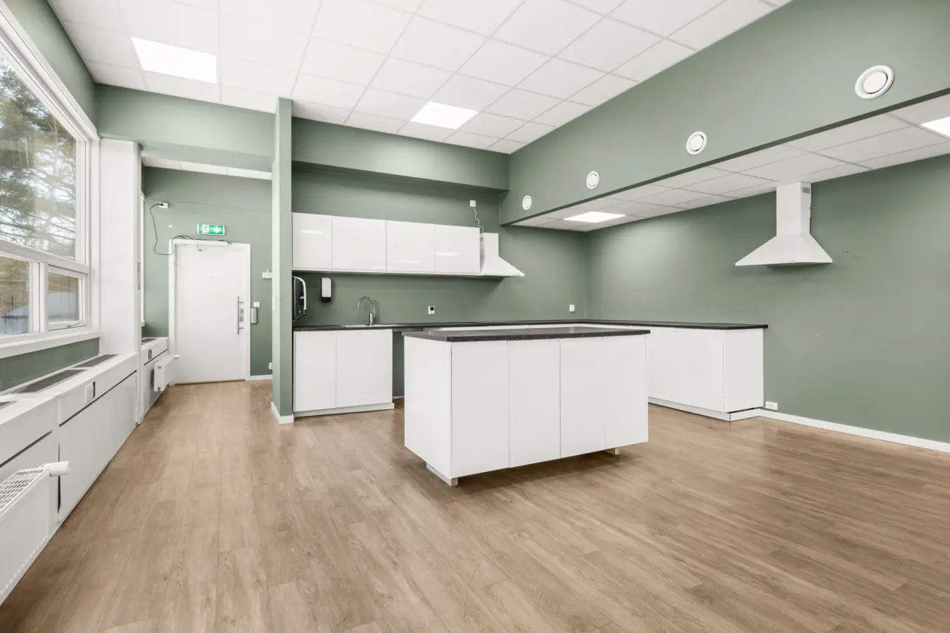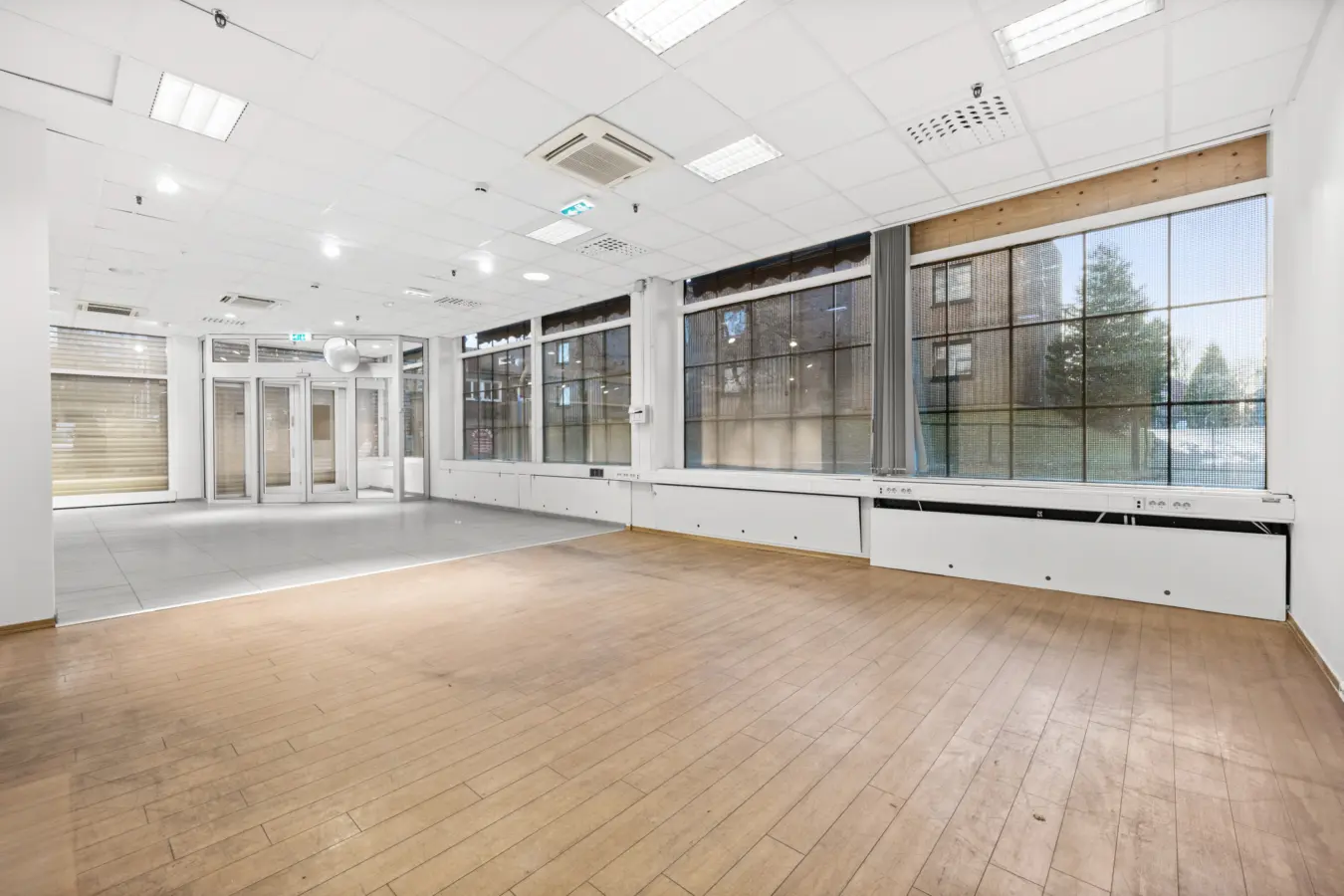 Lokalene har egen inngang fra bakkeplan. Åpent salgsareal, samt kontor, kjøkken og wc.