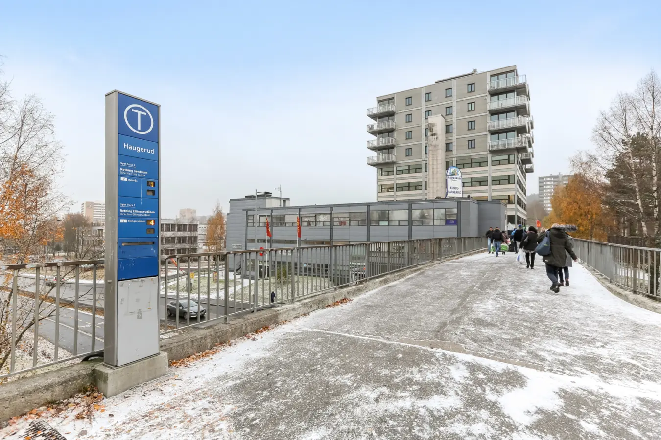 Eiendommen ligger rett ved T-banestasjonen, bussholdeplass og drosjestasjon.