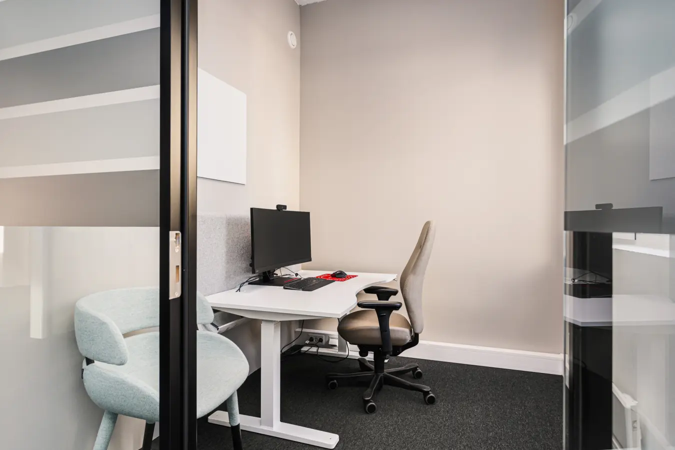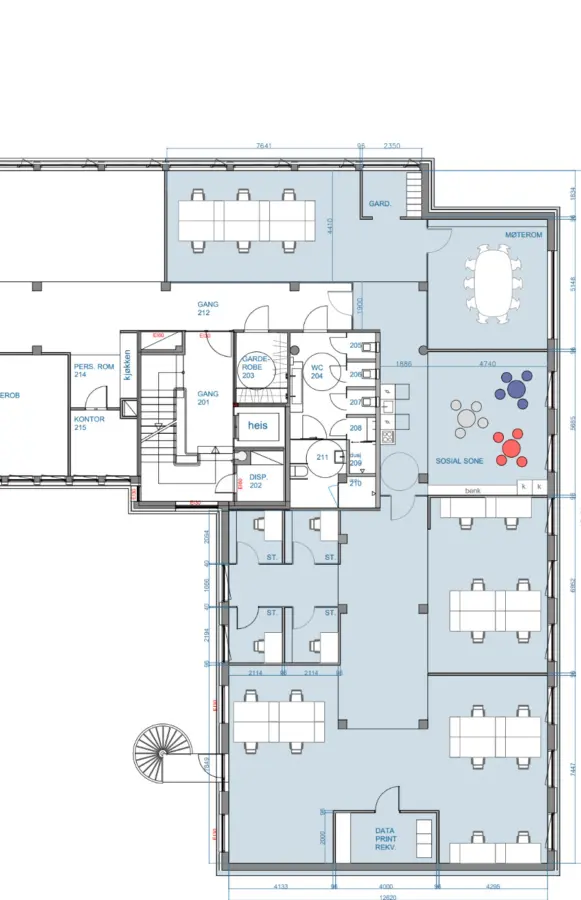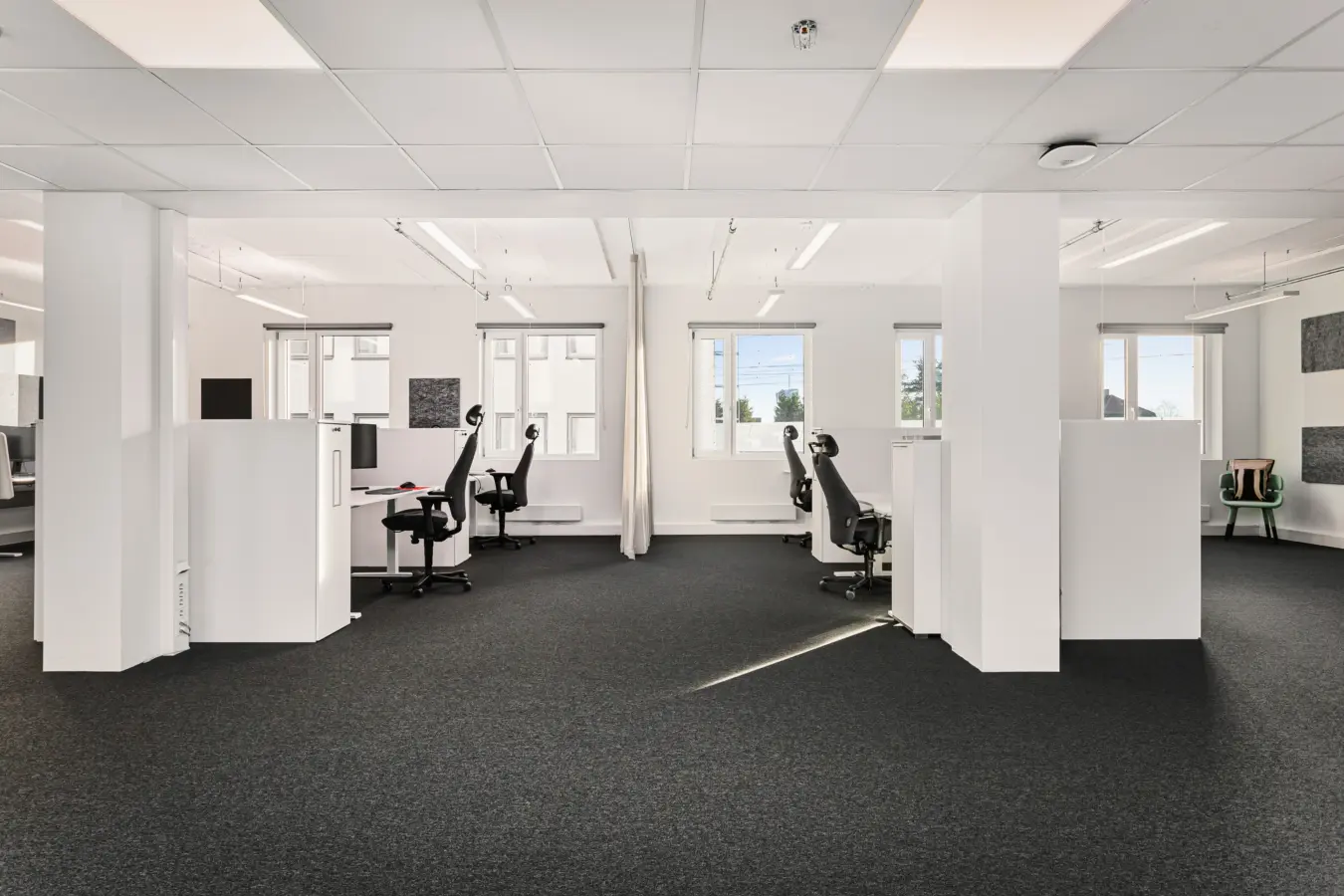 Lokalet har i dag en fin kombinasjon av kontorlandskap og cellekontorer, hvor det enkelt kan opprettes flere kontorer, eller åpnes ytterligere.
