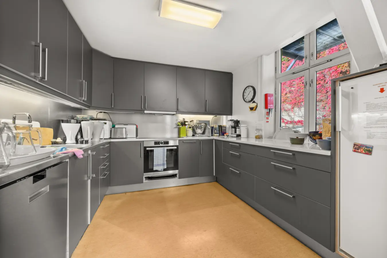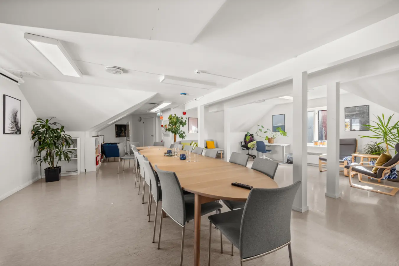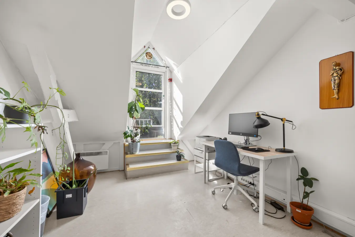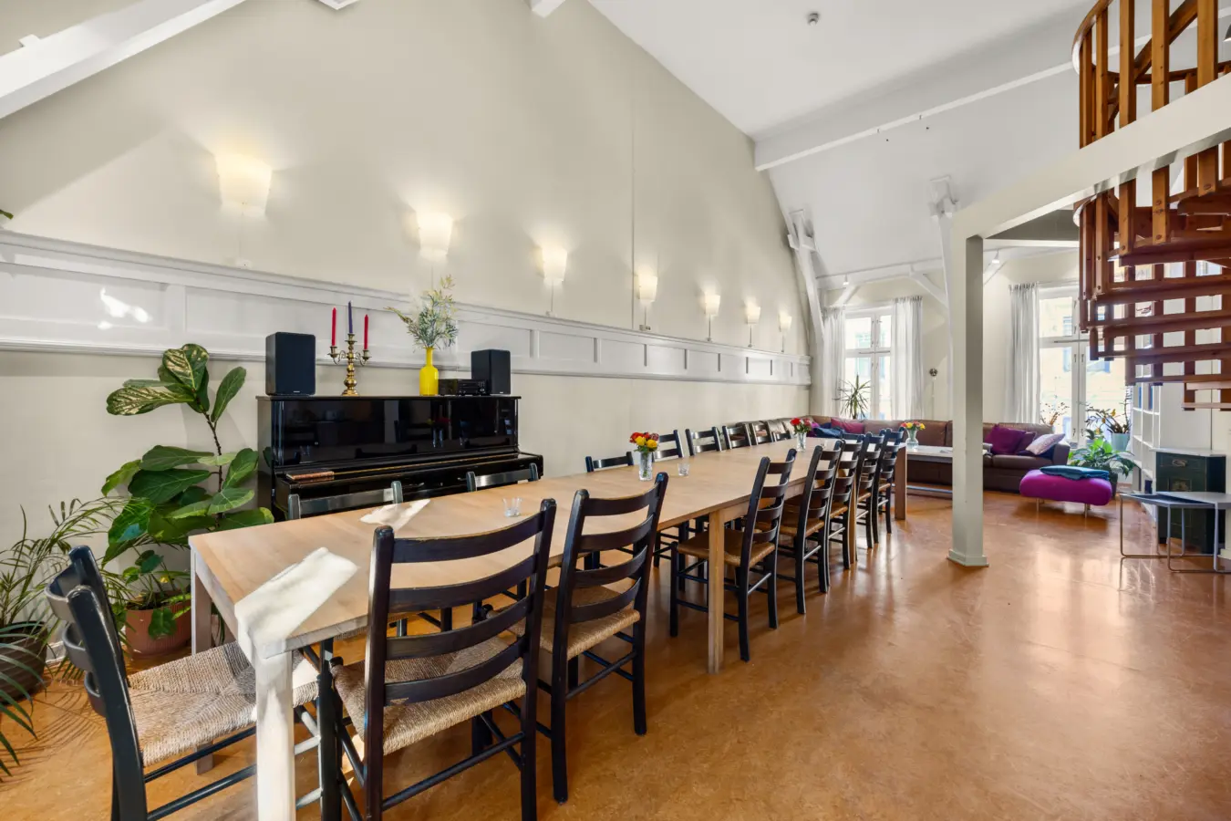 2.etg. Nr. 45: Stort allrom/forsamlingssal med god takhøyde, kjøkken med spiseplass, kontor og toalett.