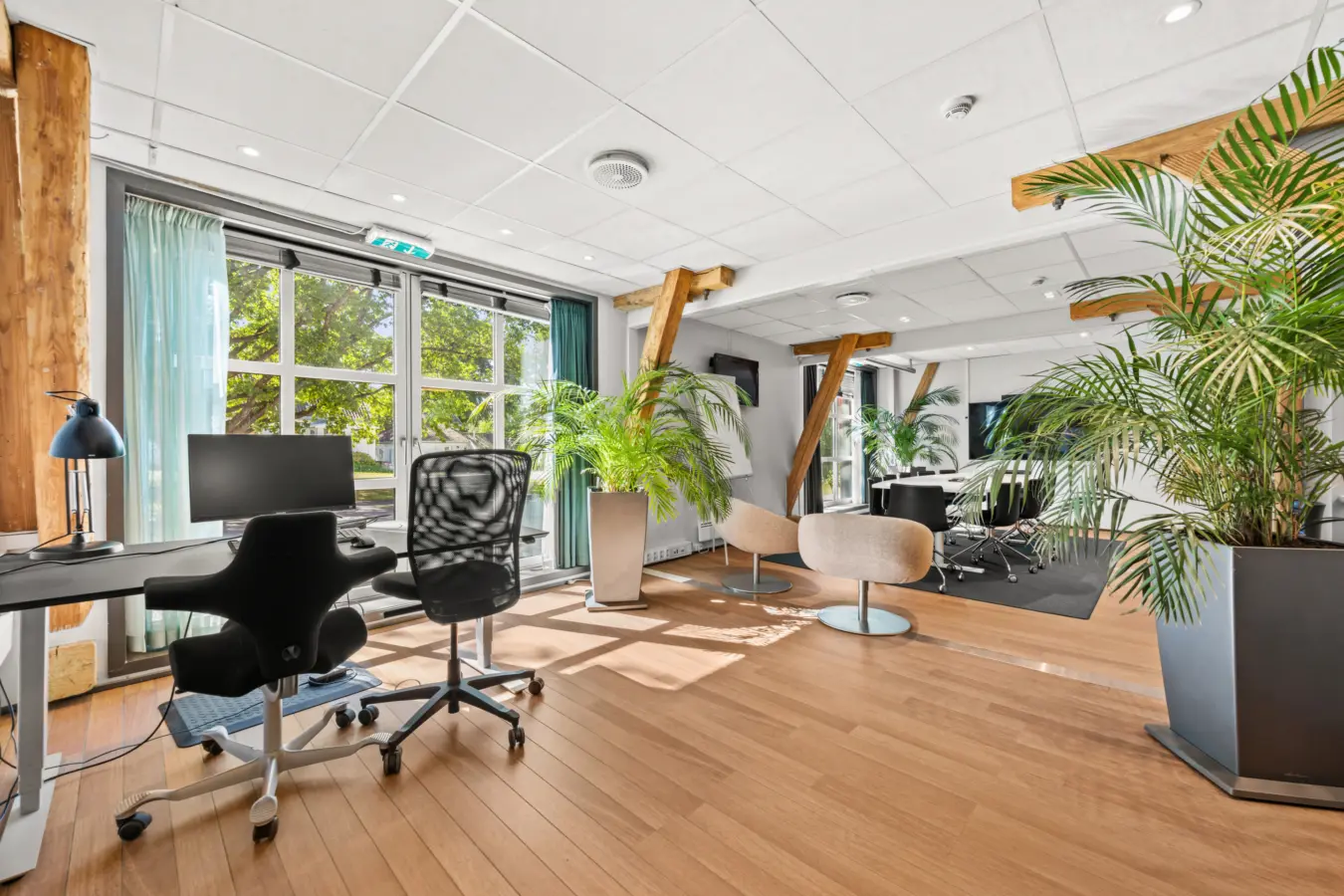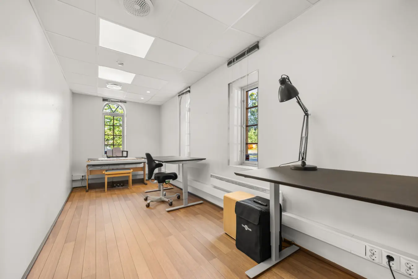 Lyst kontorlokale på 321 kvm. i 1. etasje. Lokalene kombinerer den historiske eiendommen med et moderne uttrykk – perfekt for bedrifter som ønsker både sjarm og profesjonelle fasiliteter. Lokalet har kontorer i varierende størrelse, møterom, sosiale soner, kjøkken og toaletter. Møterommene har store vindusflater som gir rikelig med dagslys og synlige bjelker som tilfører særpreg.