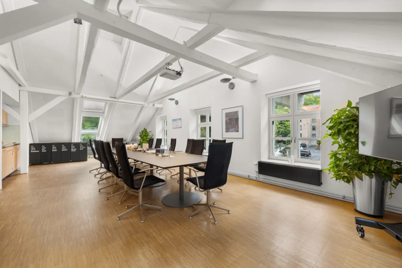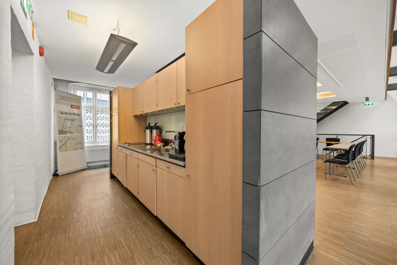 Velkomstområde med heis. Kontorlandskap og div. kontorer, møterom samt lagring. Stort møterom/spiserom med kjøkken. Garderobe og toaletter.