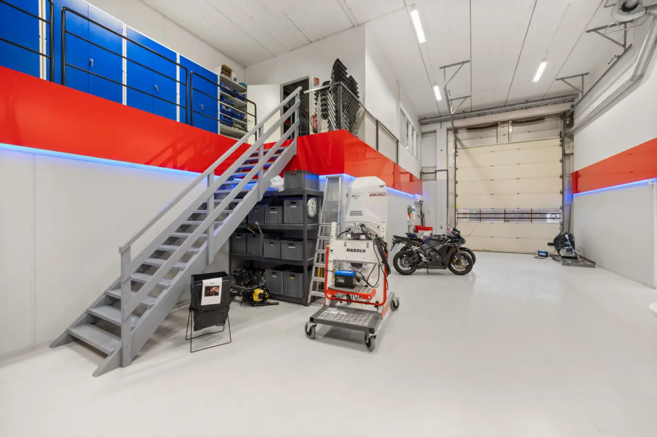 Lager 1, BTA ca. 219 kvm: ca. 6 meter takhøyde, kjøreport, mesanin, mm. Meget flott lokale over to plan. Grunnplan (6 meter takhøyde) BTA ca. 145 kvm. og mesanin (ca. 3 meter takhøyde) BTA 74 kvm. Lokalet har epoxy på gulv og holder meget god standard.