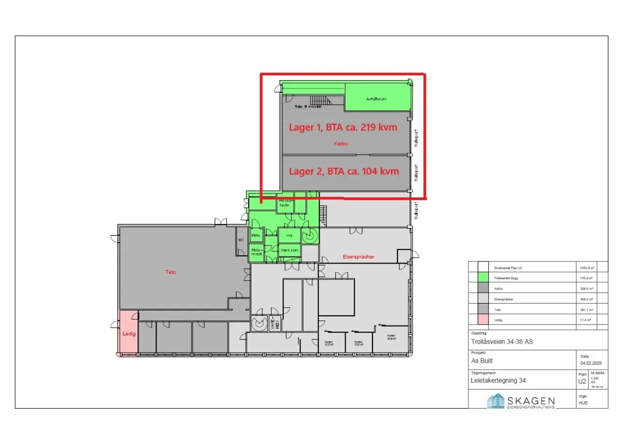 Lager 2, BTA ca. 104 kvm: ca. 6 meter takhøyde og kjøreport.