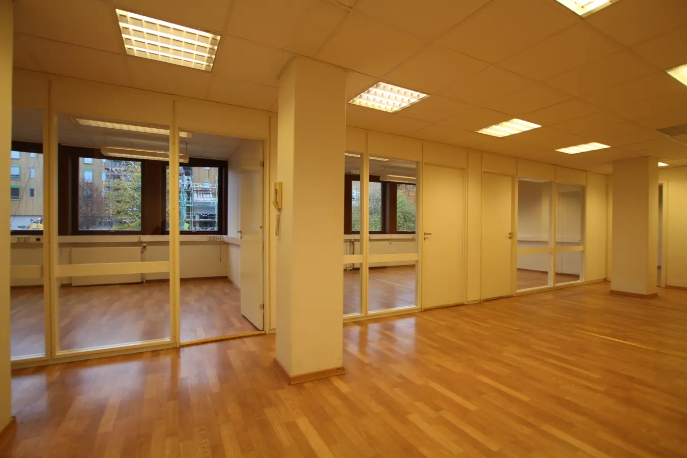 Flotte lokaler med parkett på gulv, malte vegger og senket himling med plater. Lokalene holder god kontorstandard og har ventilasjon og oppvarming inkludert i felleskostnadene.