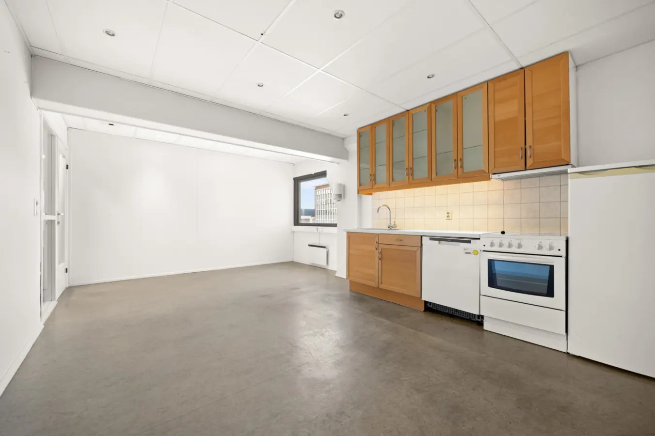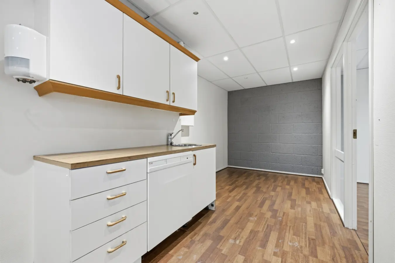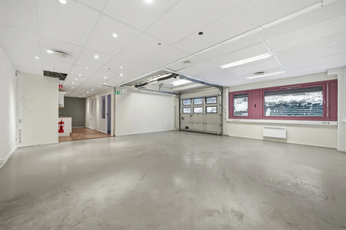 Lokalet består av ca. 57 kvm lager og 57 kvm kontor. Lagerarealet har egen kjøreport fra bakkeplan. Kontoret består av 2 cellekontorer og kjøkken. Det er felles toaletter for etasjen.
