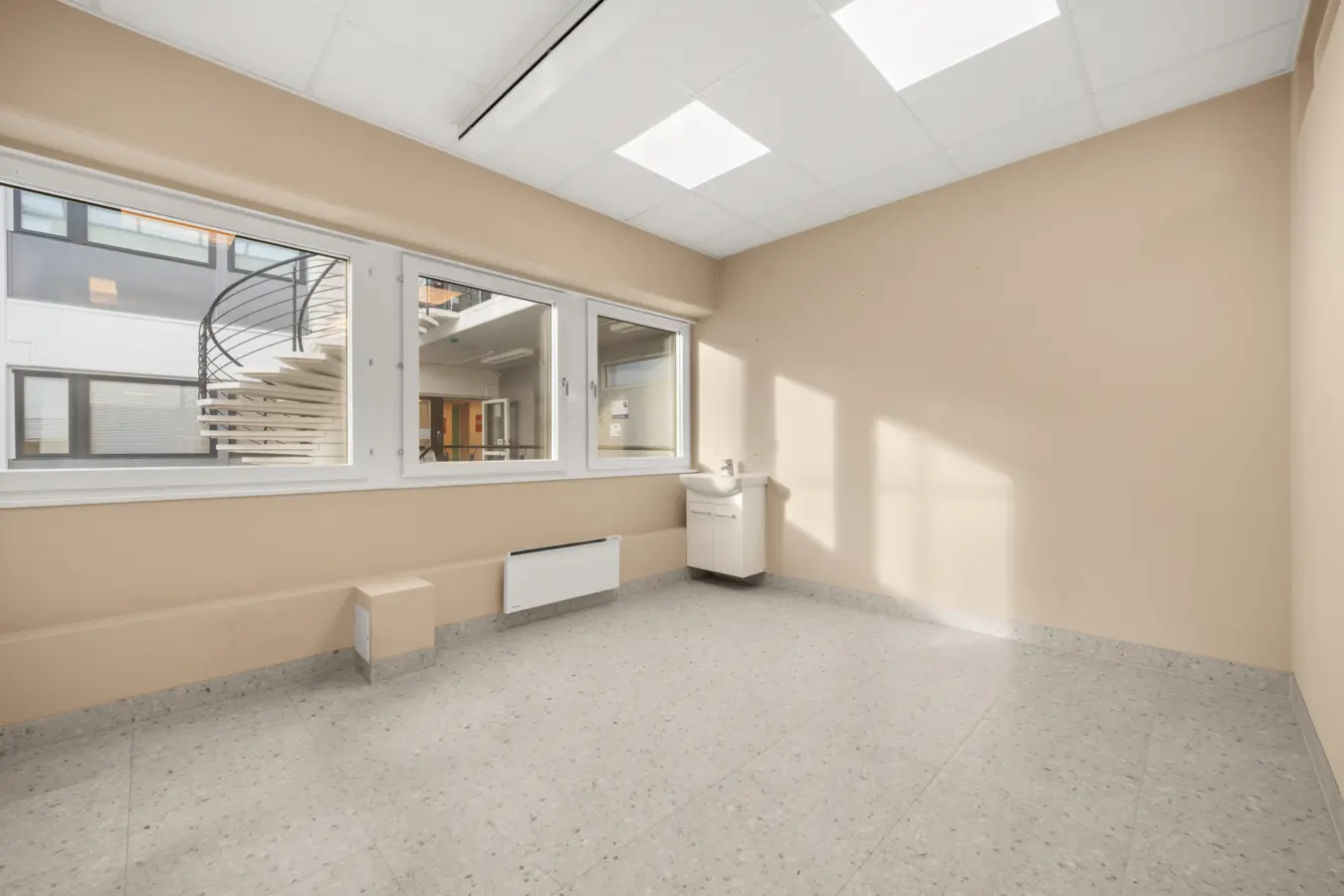 Arealet består av 6 kontorer i varierende størrelser, spiserom og sosial sone. Lokalene har tidligere vært utleied som lege kontor, så kontorene er lydtette og det er vasker på alle kontorene, i tillegg er det bygget rom for lab og venterareal for pasieneter.