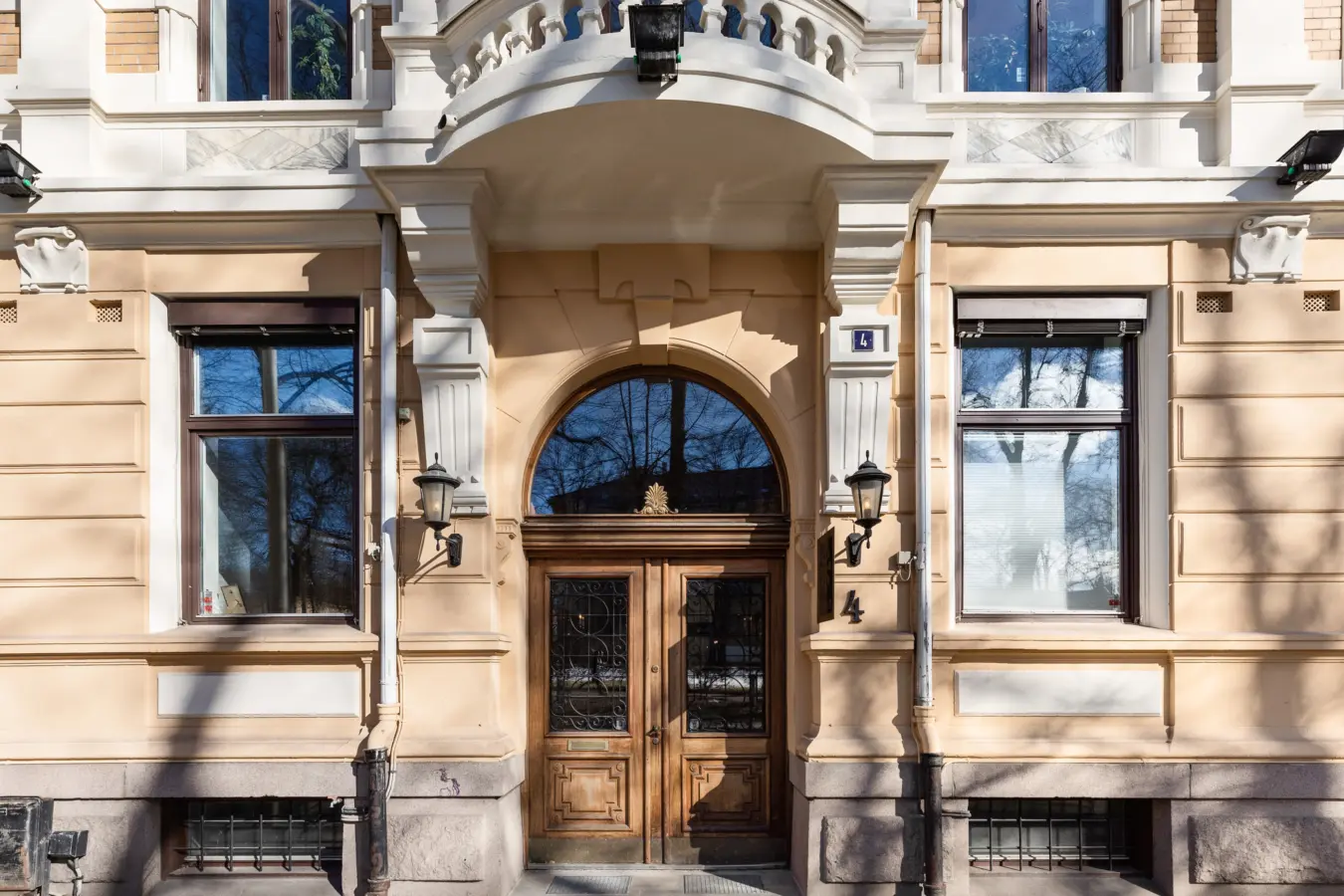 Grev Wedels Plass 4 er en meget vakker bygning oppført i 1895 som utleiegård for brennevinsprodusenten Simers & Co ved arkitekt Herman Backer. I 1916 ble gården omgjort til kontorlokaler.
