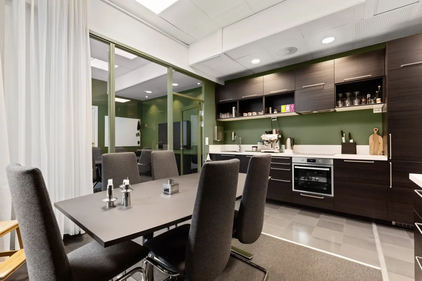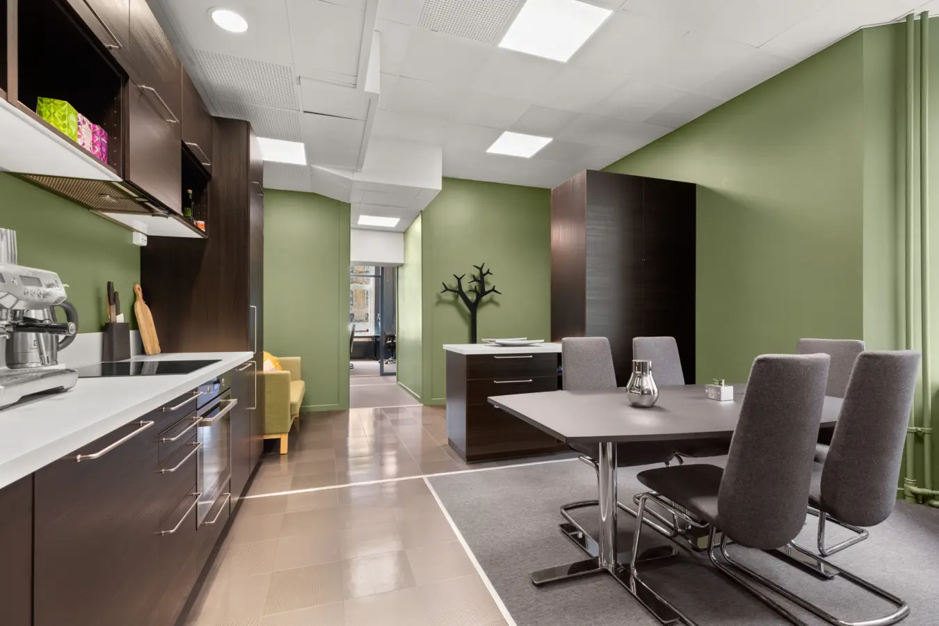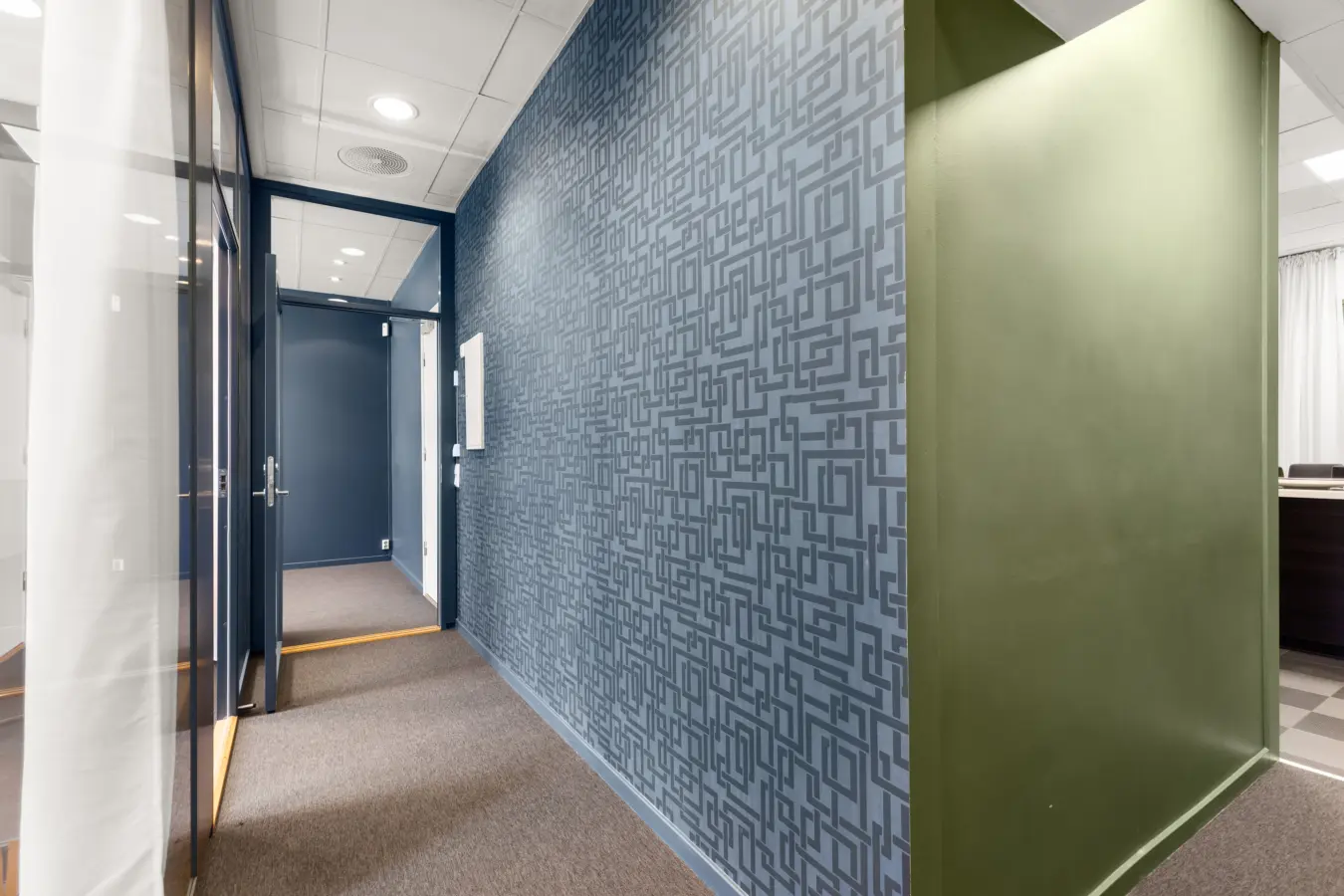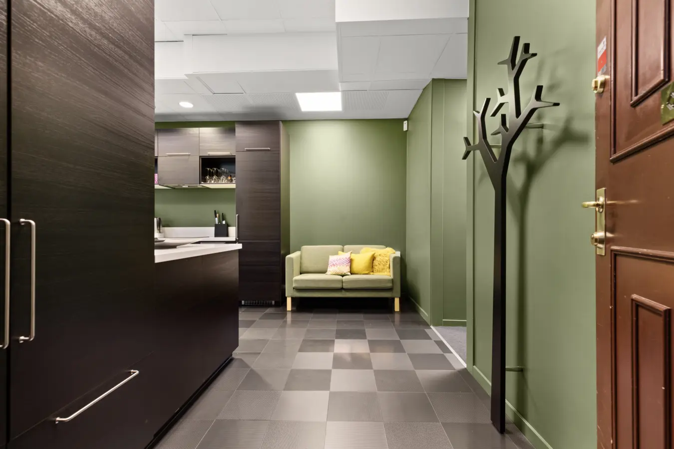 Lokalet består av åpent inngangsparti med kjøkken og sosialsone, 3 romslige kontorer og 1 møterom. I tillegg er det eget toalett på gangen.