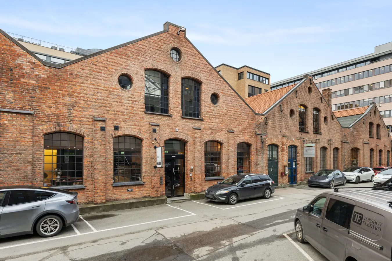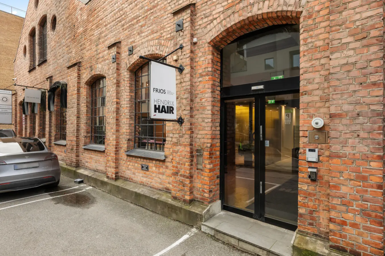 Mulig å leie p-plasser utenfor bygget.