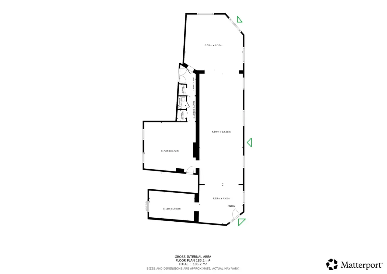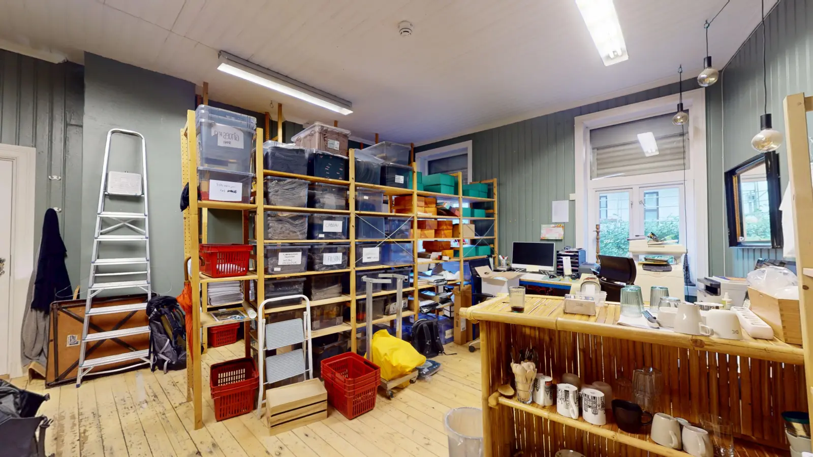 Lokalet inneholder store salgsarealer mot gaten i hele byggets bredde, samt kontor, lager og toaletter mot bakgården. Lokalet har god takhøyde og store vinduer mot gaten. Lokalet er opprinnelig 3. stk. seksjoner så det er mulighet for flere inngangsdører.